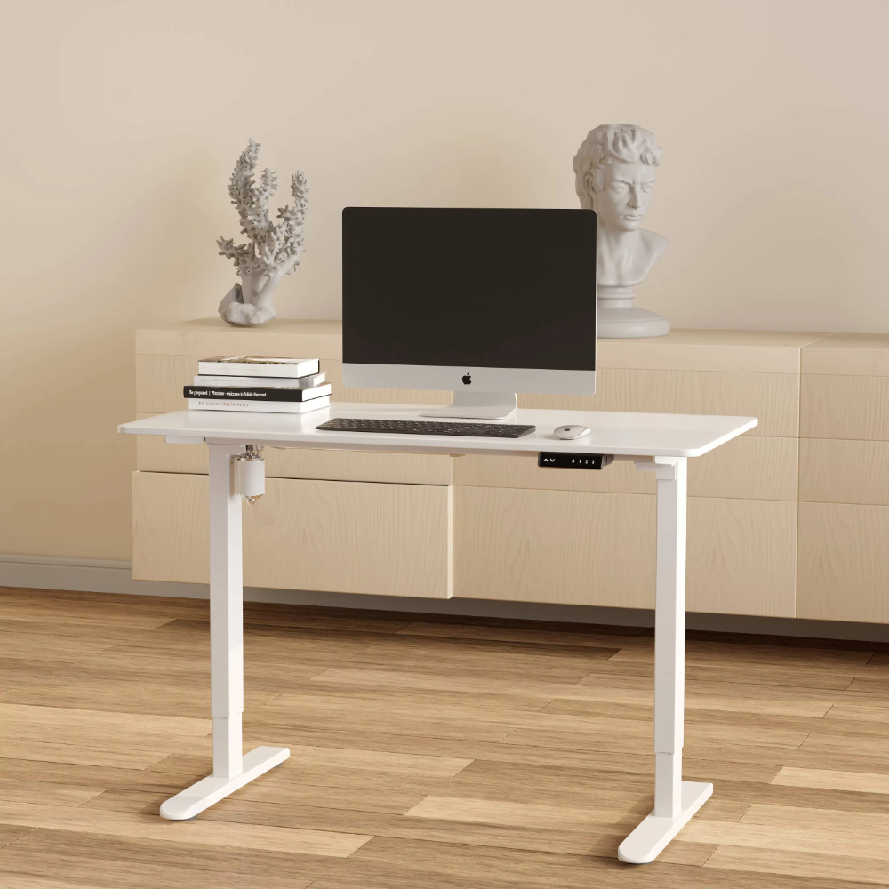 The desk supports proper posture by enabling alternating between sitting and standing throughout the day. This reduces back strain, improves circulation, and boosts overall comfort and focus.