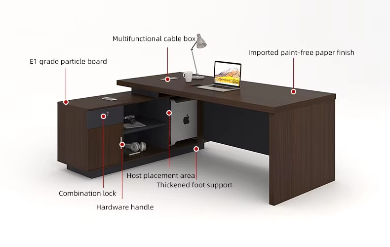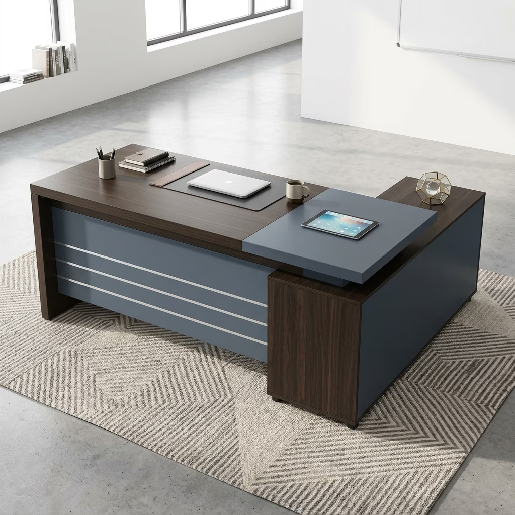 This executive desk is built to support a dynamic work routine. Its ergonomic layout encourages better organization and efficiency, while the wide surface allows you to stay productive without feeling cramped. The L-shape design also makes it easy to separate tasks, improving focus and workflow.