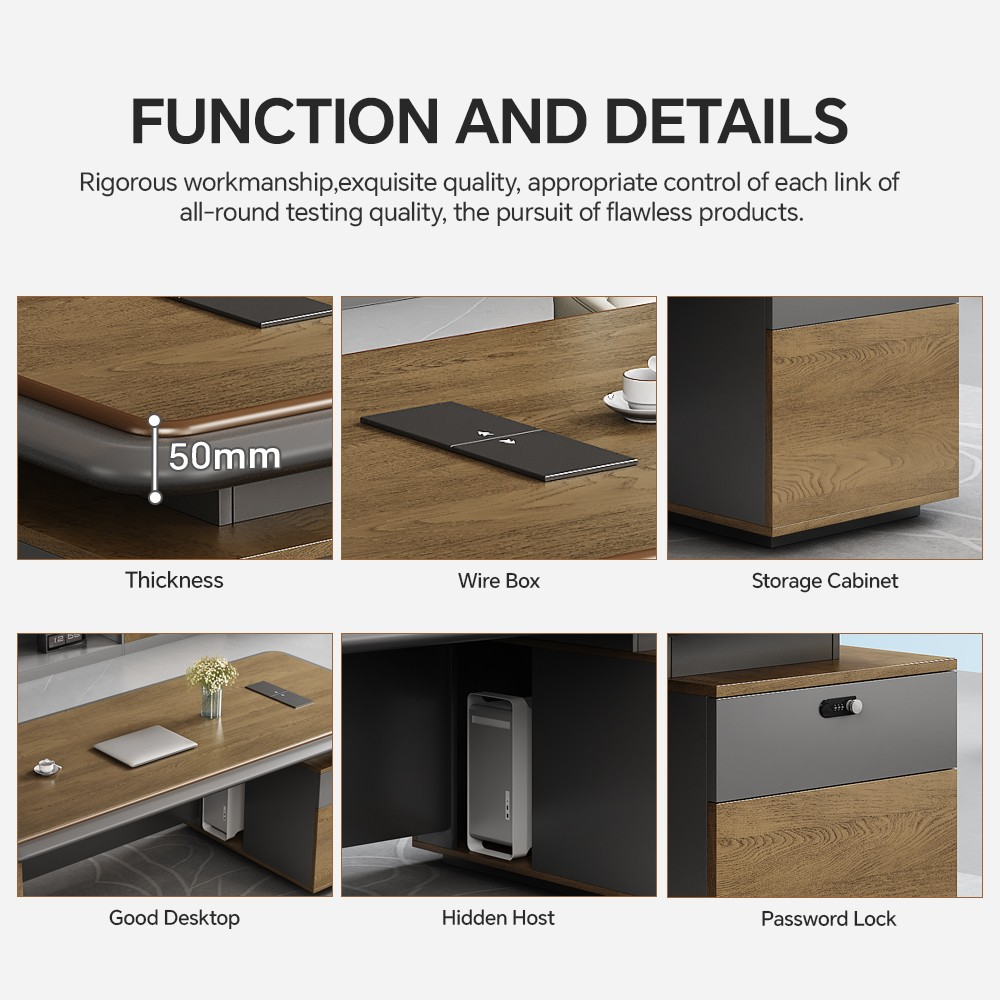 Whether used as a CEO desk, manager workstation, or premium office table, this executive desk adapts effortlessly to your needs. The large surface supports multiple monitors, laptops, printers, and desk organizers, helping you stay productive and organized.