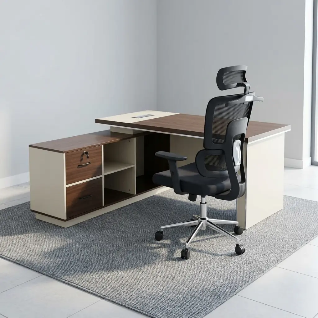 The 1.8-meter L-shaped design offers ample workspace for multitasking—perfect for computers, paperwork, and meetings. Its corner-friendly structure maximizes office space while creating a commanding executive setup. 🧑💻