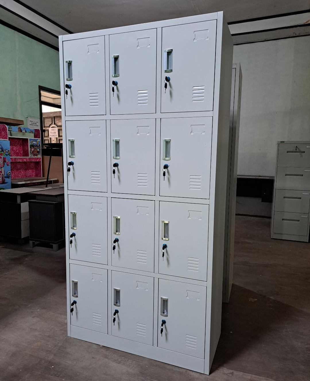 Keep your office, gym, school, or workspace clutter-free with the 12-Locker Steel Office Cabinet. Designed for maximum security and efficiency, this cabinet provides individual lockers for multiple users, making it perfect for shared workspaces, staff rooms, or public facilities. Its sturdy steel construction and reliable locking mechanisms ensure long-lasting protection for personal belongings.