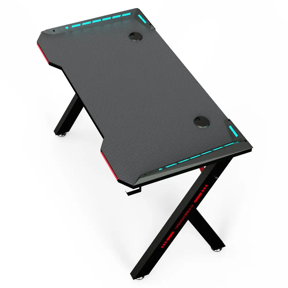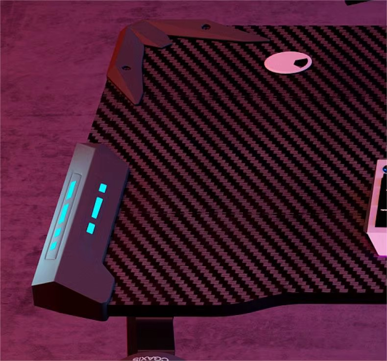 Crafted with a strong engineered wood desktop and reinforced steel frame, this gaming desk is designed to provide excellent stability and durability. The sturdy structure ensures the desk remains firm even during intense gaming moments, while the premium materials protect it from everyday wear and tear. The modern carbon-style surface finish not only enhances its gaming aesthetic but also makes it easy to clean and maintain.