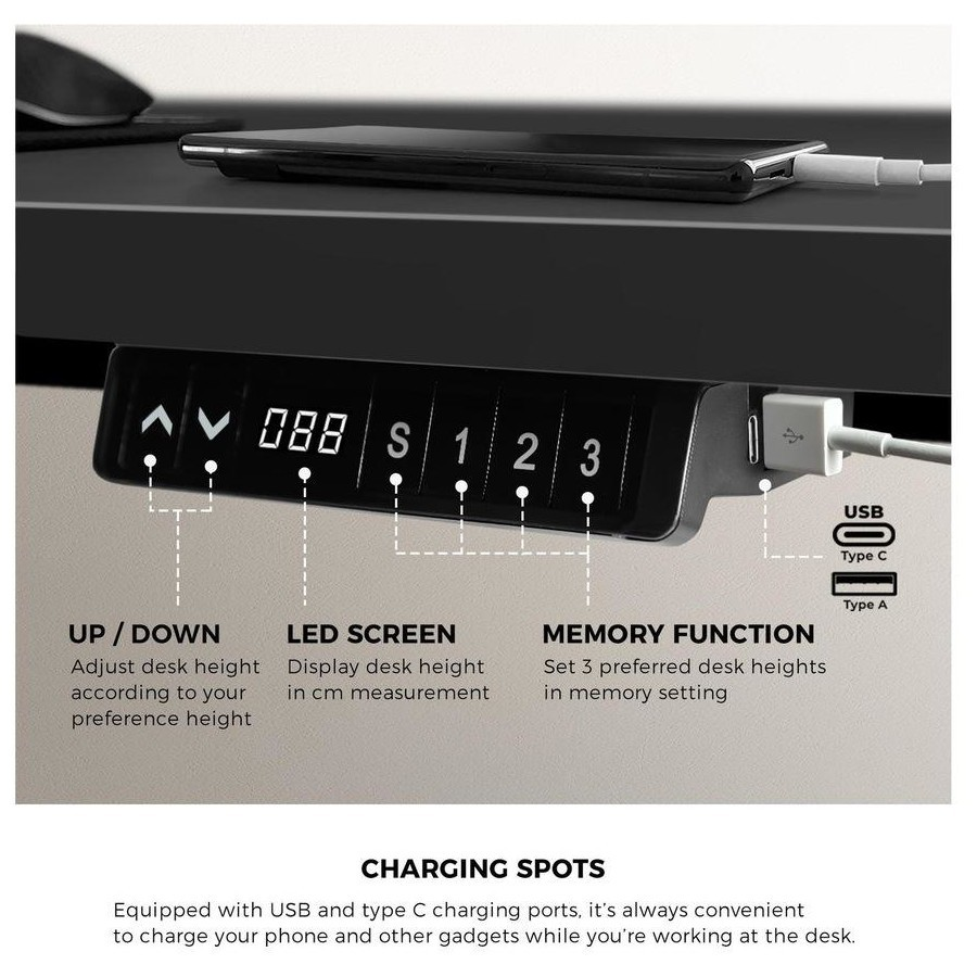 Thanks to the electric motor, adjusting the desk height is quick and effortless. Simply use the easy-to-reach control panel to raise or lower the desk from sitting to standing height in seconds. This promotes better posture and reduces strain caused by prolonged sitting.