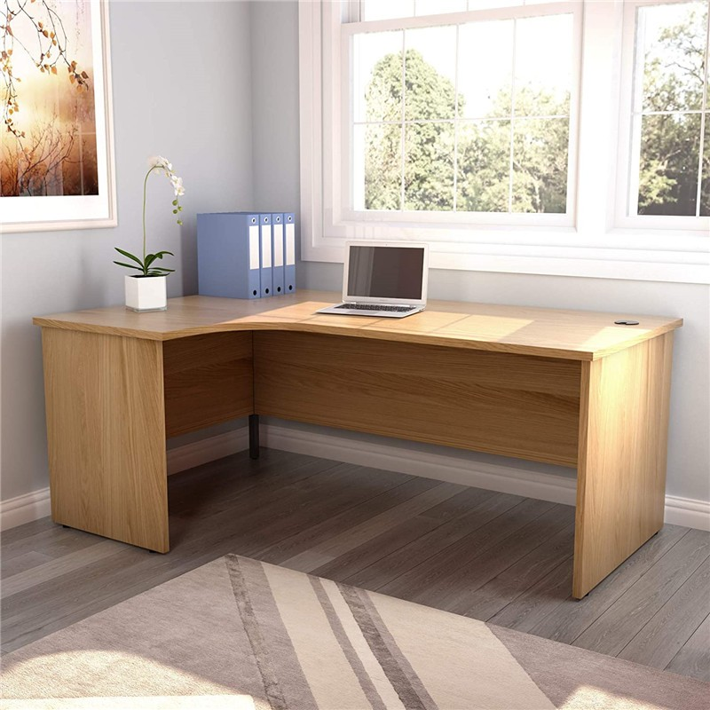 The desk features a sleek, minimalist style that suits modern offices and study rooms. It is commonly available in finishes such as oak, walnut, white, or black, allowing it to match different interior designs.