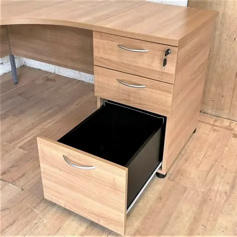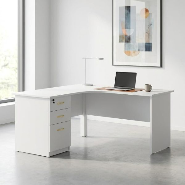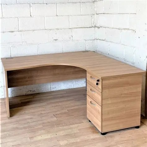 Not only does this desk offer space, but many models also include built-in drawers or side storage. These compartments allow you to store documents, stationery, and personal items neatly. Consequently, your workspace remains organized and clutter-free.