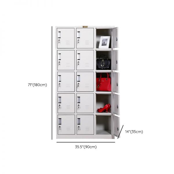 Each of the 15 individual compartments is fitted with its own secure locking mechanism, making it perfect for employee storage, student use, or gym changing rooms. The sleek, vertical design maximizes your space while keeping items safe, separated, and ventilated. Whether you’re managing personal items, uniforms, tools, or supplies, this steel locker cabinet offers high-capacity storage without compromising on quality or design.
