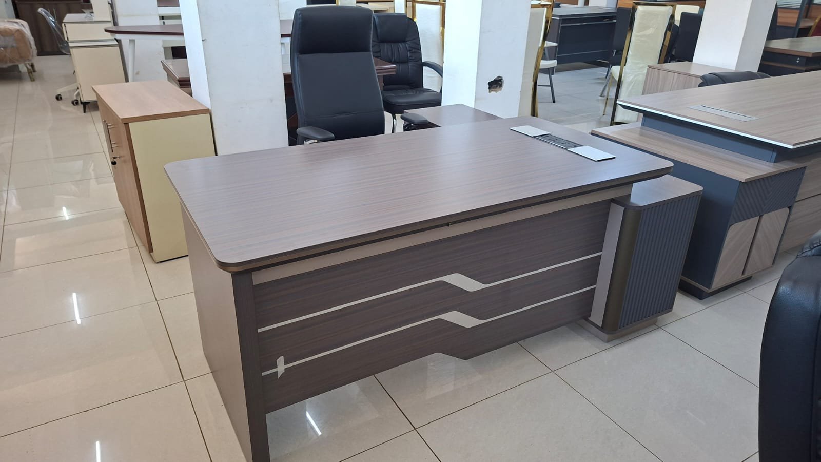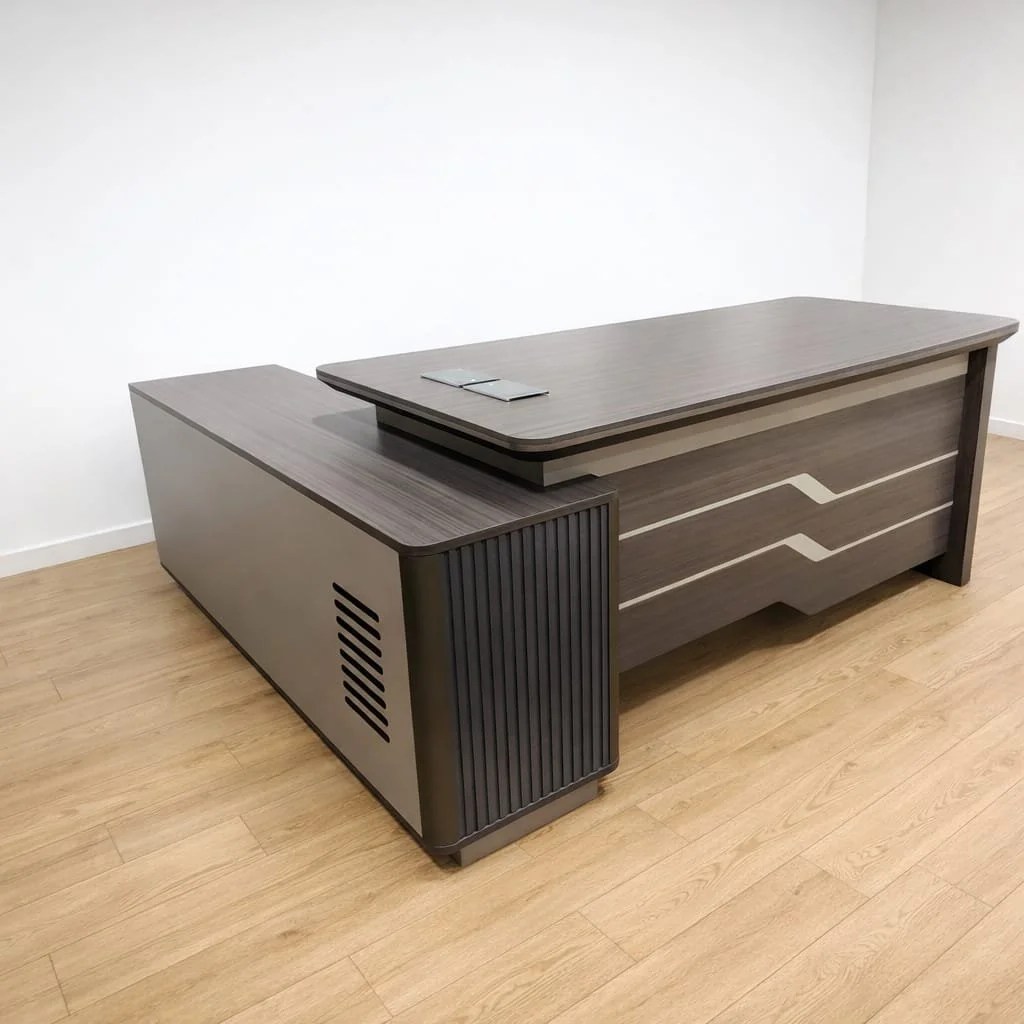 Crafted with high-quality materials and a refined finish, this executive desk blends durability with modern aesthetics. It seamlessly complements corporate offices, home setups, and executive suites while maintaining a professional look.