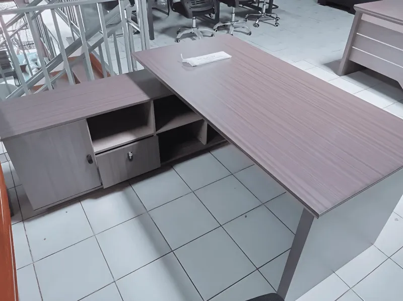 Typically built from engineered wood or MDF with a scratch-resistant laminate finish, the desk is designed for durability and everyday office use. The reinforced frame and sturdy legs ensure stability even when supporting heavy office equipment.