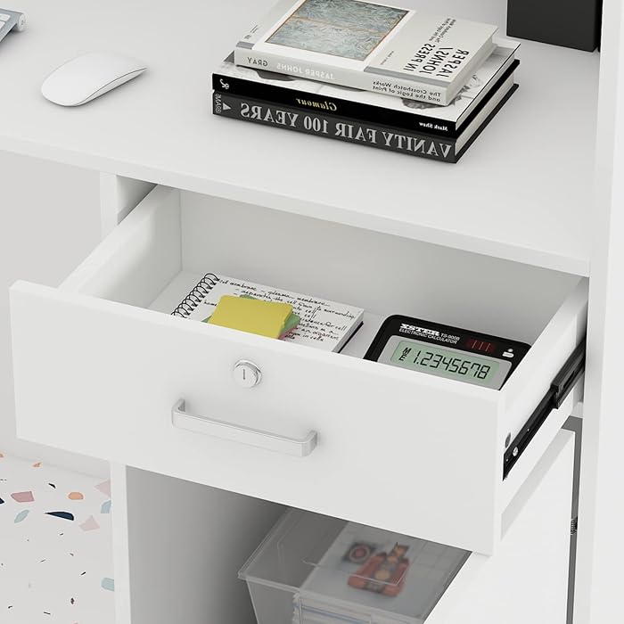 Includes built-in drawers or shelves (if applicable) for organizing documents and essential office items.