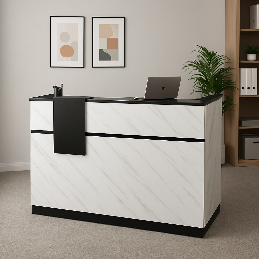 Thanks to its durable construction and elegant finish, the desk enhances any corporate lobby, clinic, showroom, or hotel front area. Moreover, its extended length offers more room for equipment, documents, and visitor interaction, ensuring both comfort and efficiency.