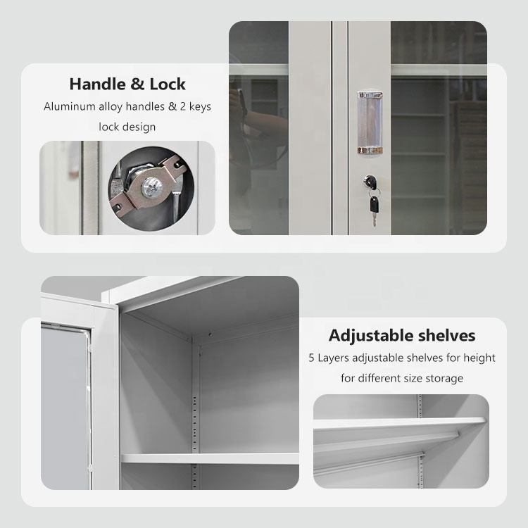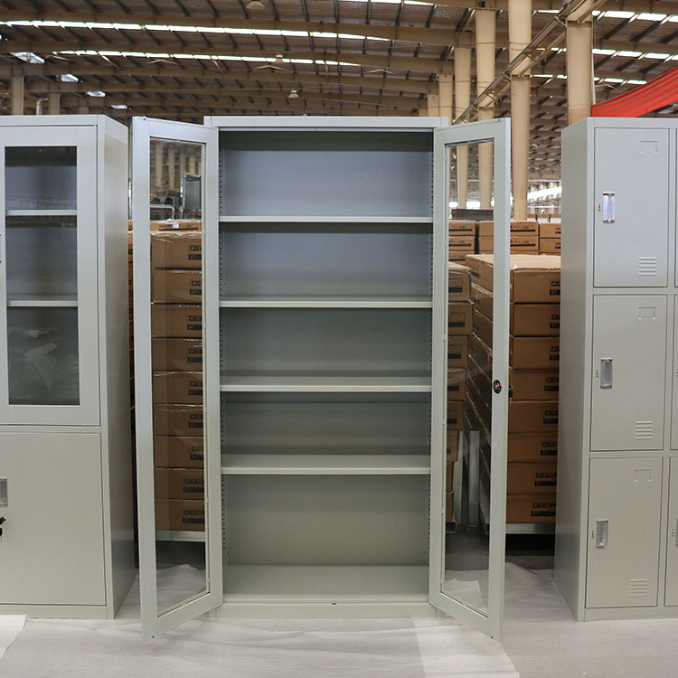 Half-glass metallic storage cabinet