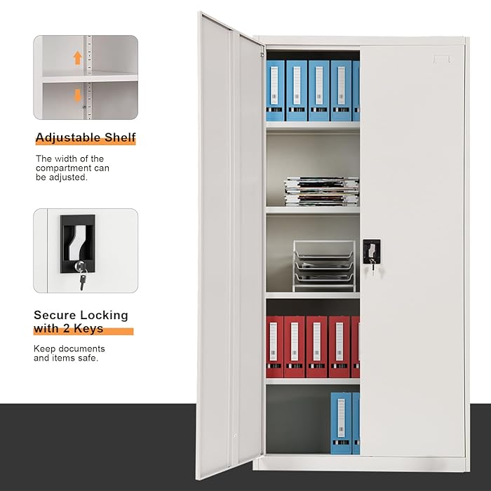 Inside, the cabinet features adjustable steel shelves that can be repositioned to fit items of various sizes. Ideal for storing: