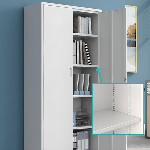 The two doors open smoothly, revealing spacious compartments perfect for storing files, folders, office supplies, and personal items. Additionally, adjustable shelves allow you to customize the interior to your needs.