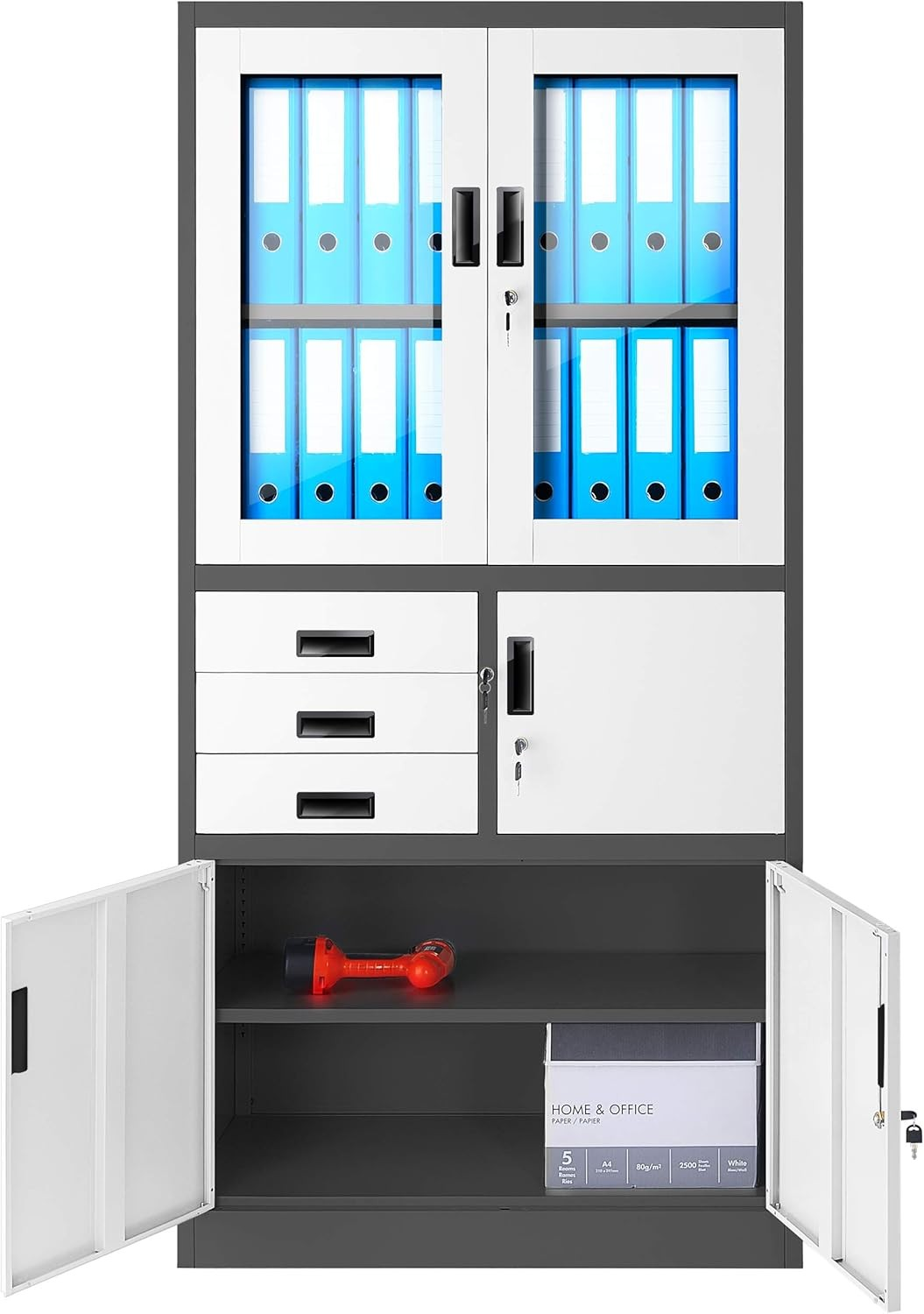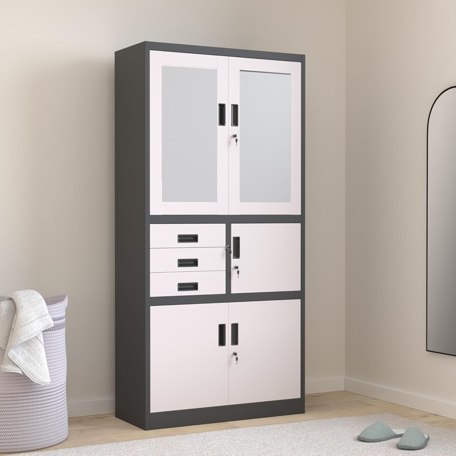 The cabinet features a secure locking system for both the main doors and the internal safe. In addition, this dual-lock design ensures that only authorized users can access stored items. Therefore, it is perfect for protecting sensitive office documents.