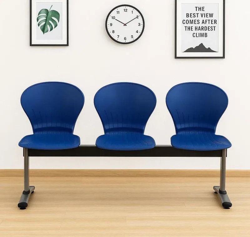 Three connected seats provide organized, communal seating for visitors and guests.