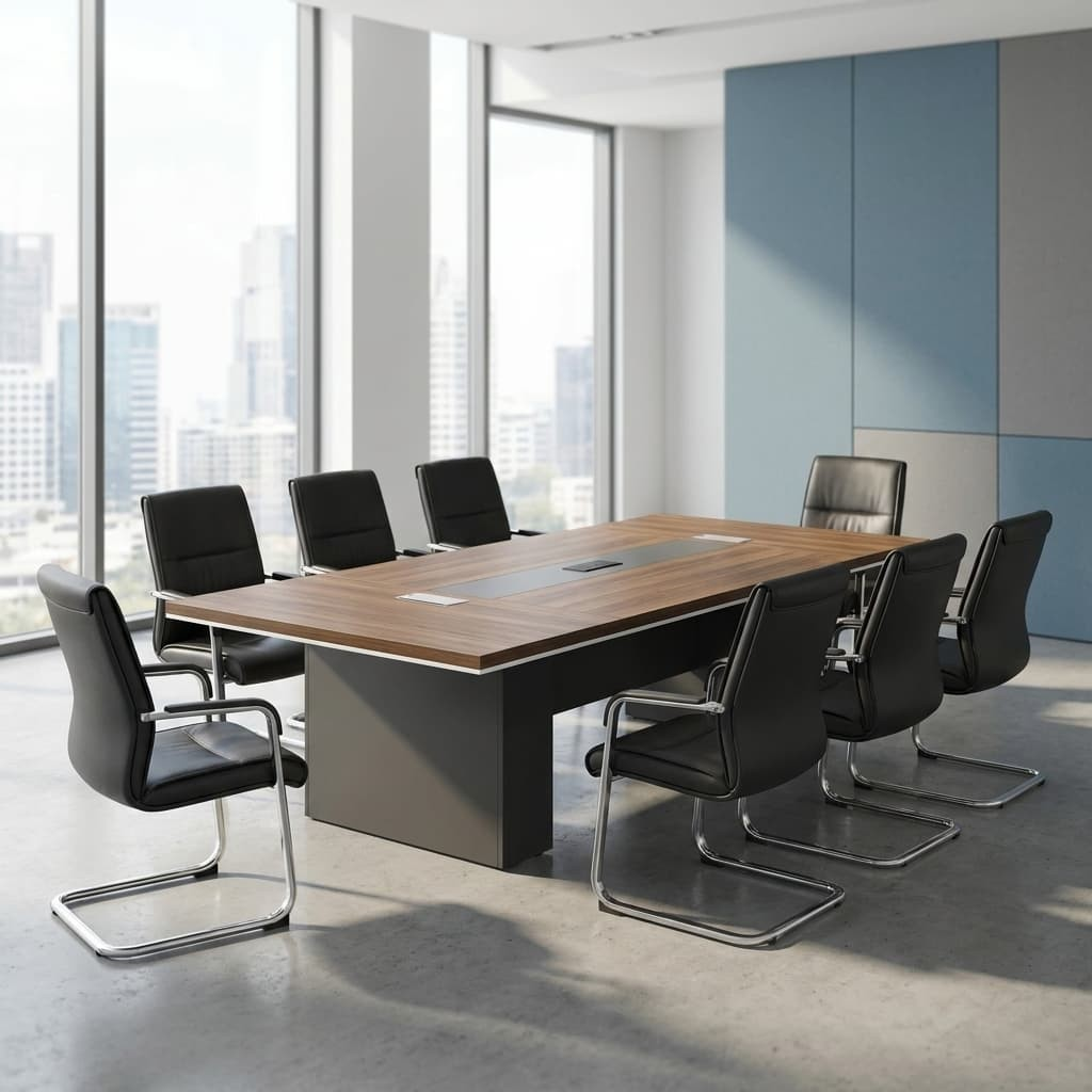 The generous 3-meter tabletop provides plenty of space. For example, it can comfortably accommodate multiple team members, laptops, and documents. As a result, meetings run smoothly without clutter or crowding.