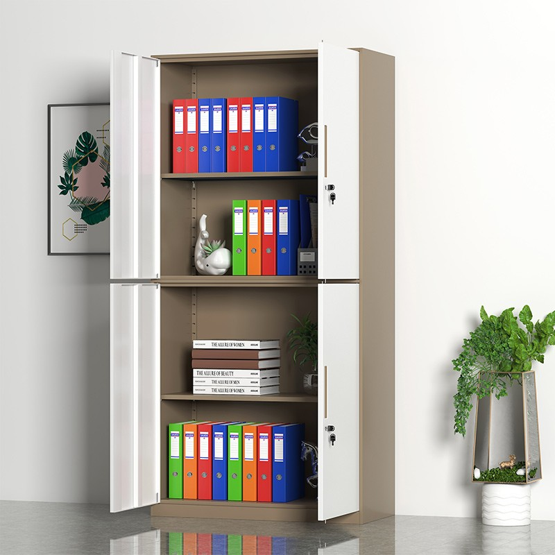 This cabinet features four individual doors, allowing files and documents to be organized by department or category. Additionally, the multi-door design improves accessibility while maintaining order. Therefore, users can retrieve documents quickly without disrupting other stored items.