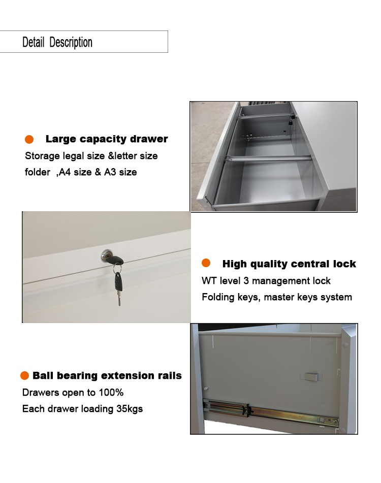This cabinet features four large drawers, providing ample space for files, documents, and office supplies 📁🗄️. Each drawer slides smoothly for easy access, allowing you to stay organized and efficient at work 🧠✅.
