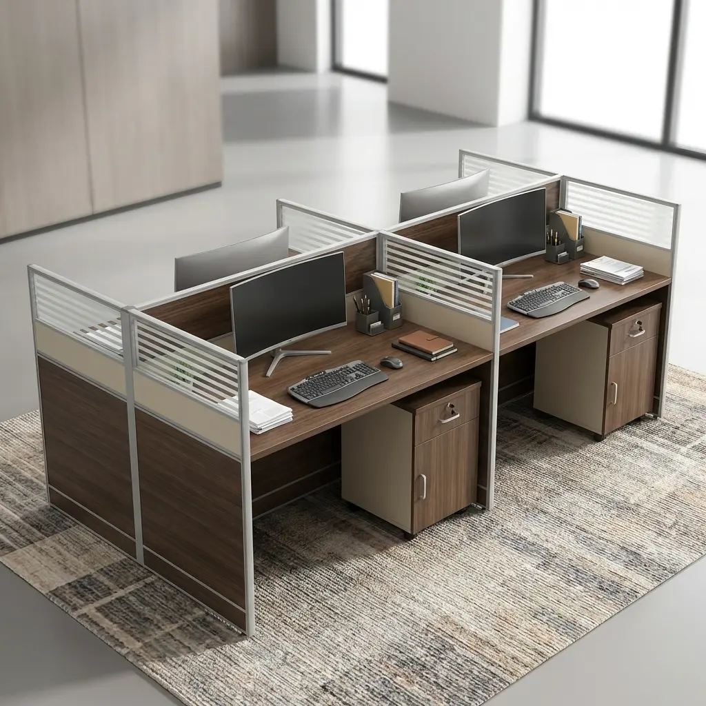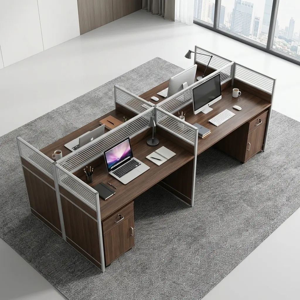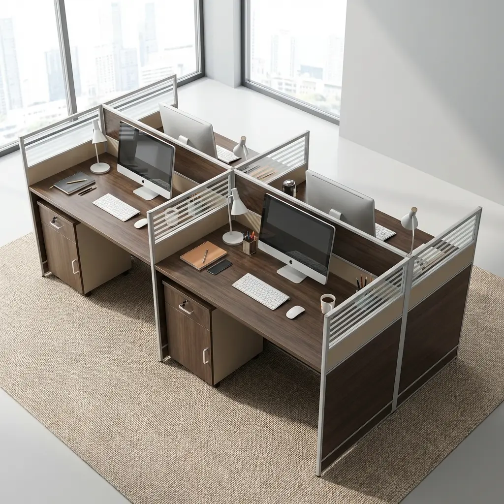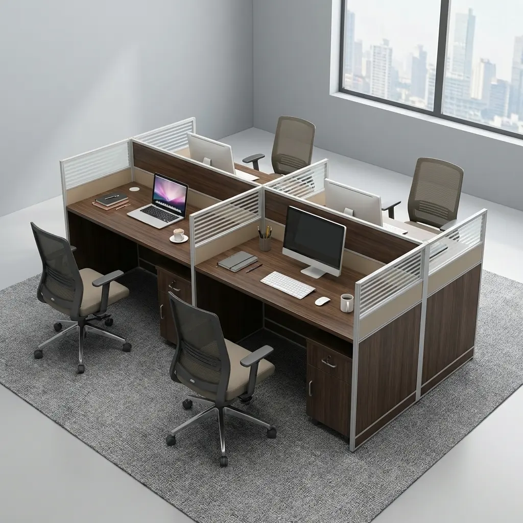 - 4-Person Workstation Design 👥: Comfortably accommodates four users in a shared layout, optimizing office space and teamwork.