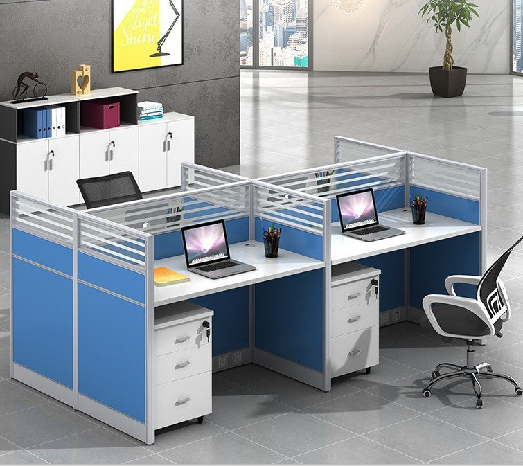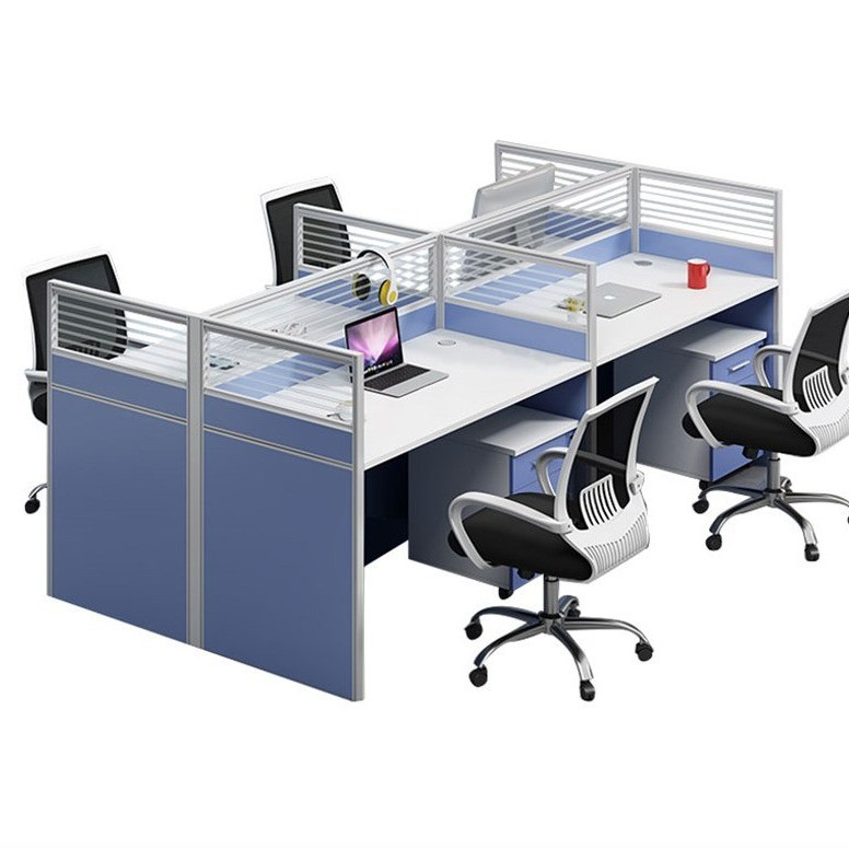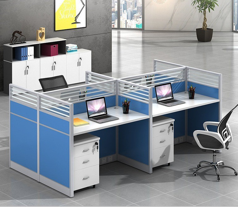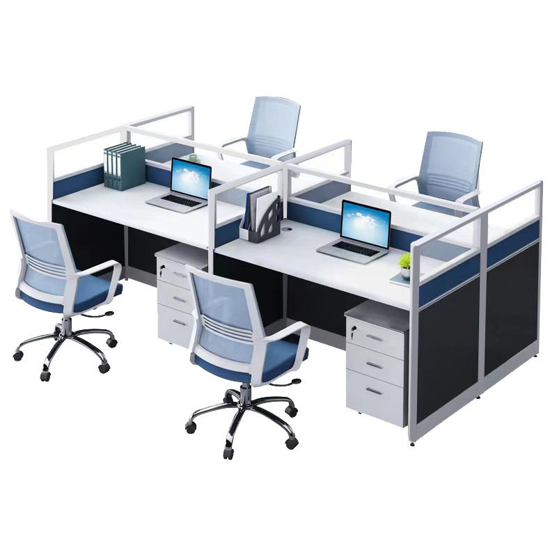 The 4-way setup allows four employees to work comfortably within a shared yet organized layout.