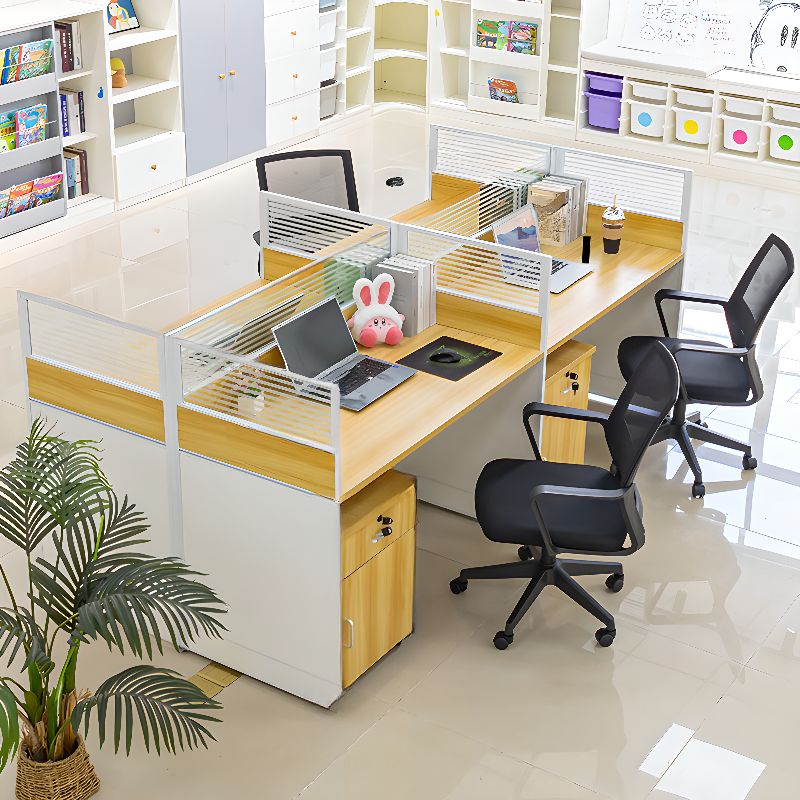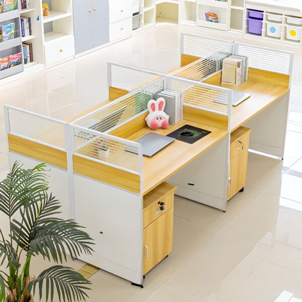 Each workstation features an individually defined workspace with generous surface area for computers, documents, and daily essentials. The 4-way layout keeps team members connected yet focused, encouraging seamless communication and reducing distractions. Perfect for departments that require both shared collaboration and independent workflow, this design strikes a balance between teamwork and productivity.