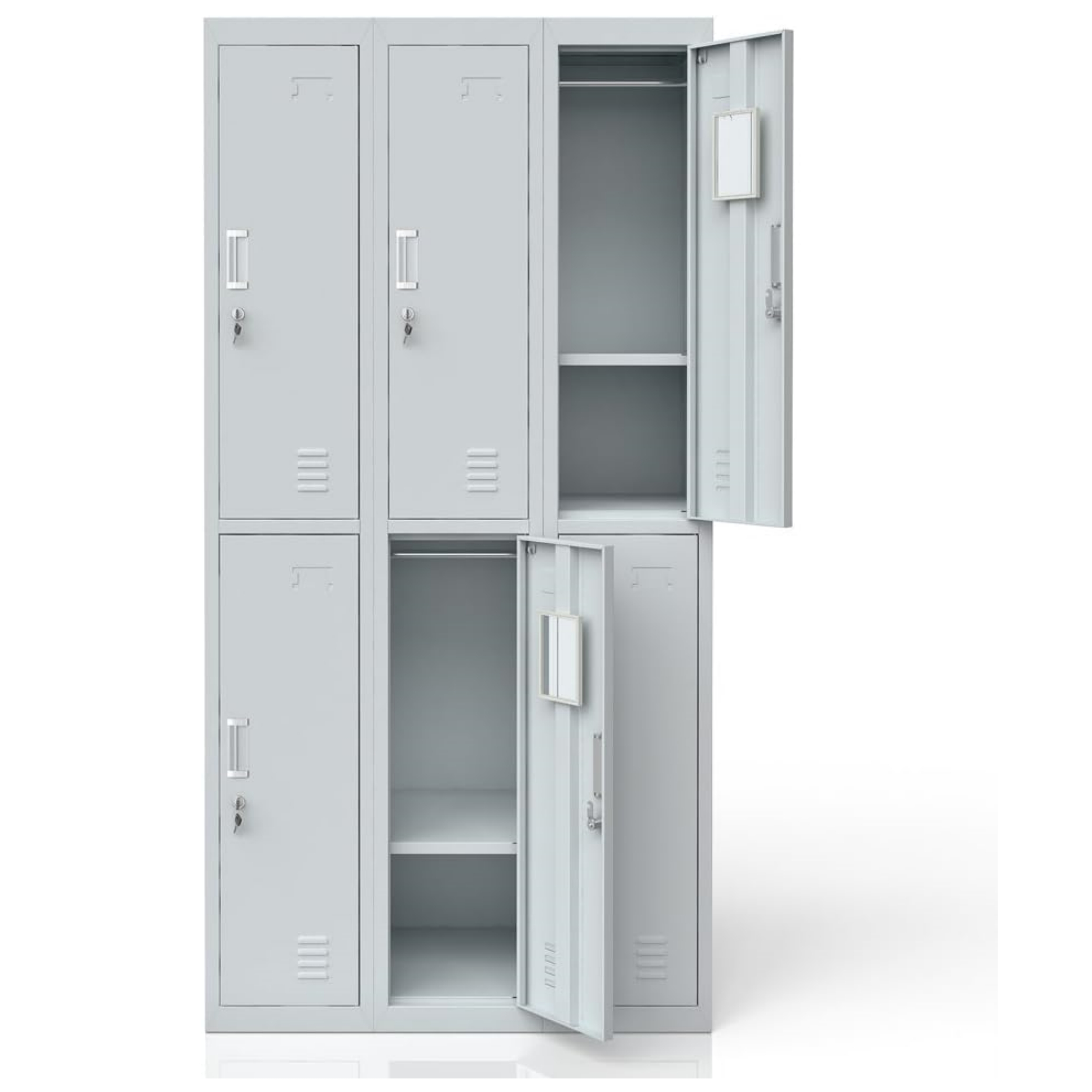 Upgrade your workspace organization with the 6-Locker Office Storage Cabinet, a durable and secure storage unit designed for modern offices, schools, gyms, and industrial environments. Additionally, this cabinet provides six individual compartments, allowing multiple users to store their belongings safely and conveniently. As a result, you maintain a neat, professional, and clutter-free environment.