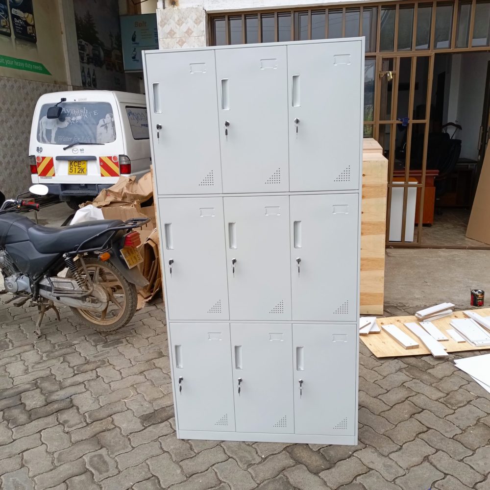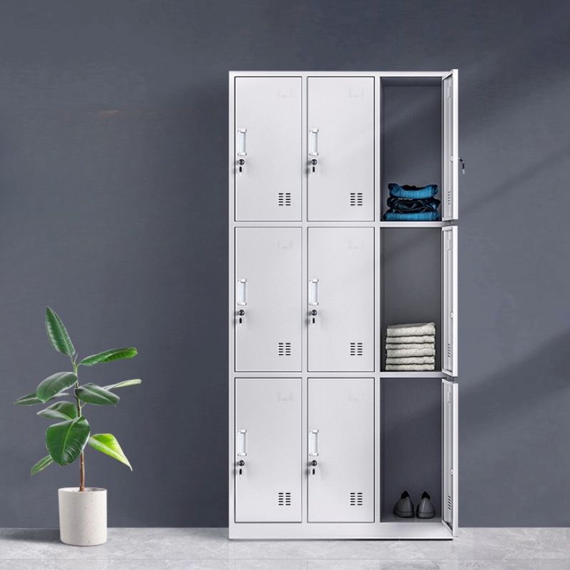 9-door steel locker cabinet, multi-door locker, office steel storage, employee locker cabinet, industrial steel locker, gym locker cabinet, metal storage cabinet, durable steel office furniture.