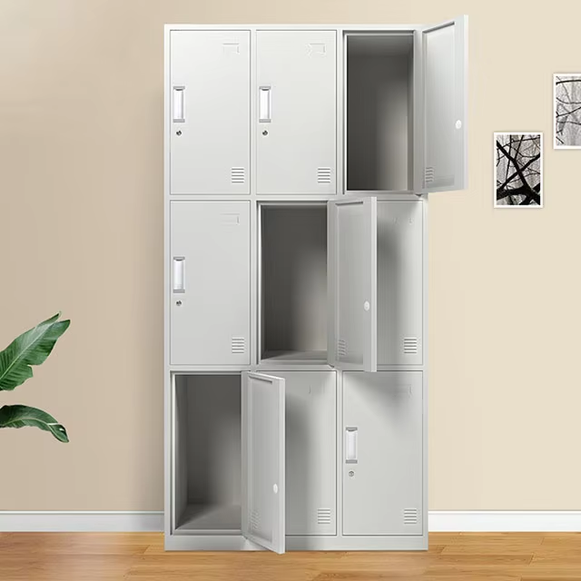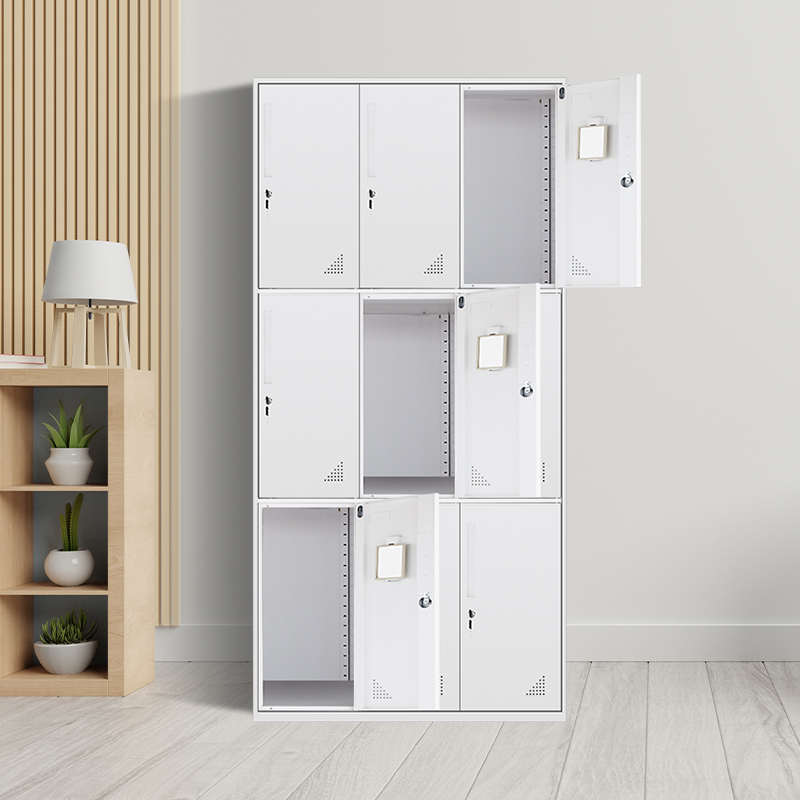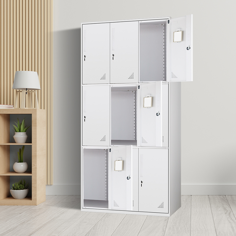 Featuring 9 individual lockers, this cabinet allows multiple users to store their belongings separately while maintaining organization and privacy.