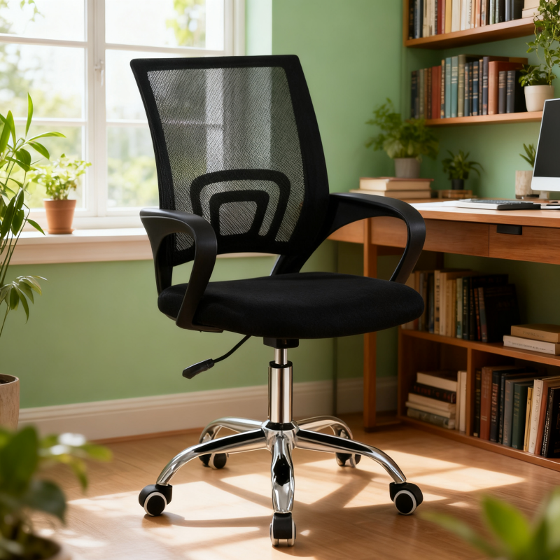 This chair offers adjustable height and tilt features, allowing you to find the perfect seating position for productivity and comfort. The sturdy base and smooth-rolling casters ensure stability and easy mobility, while the modern design complements any office décor. Lightweight yet durable, it’s an ideal choice for daily office use.