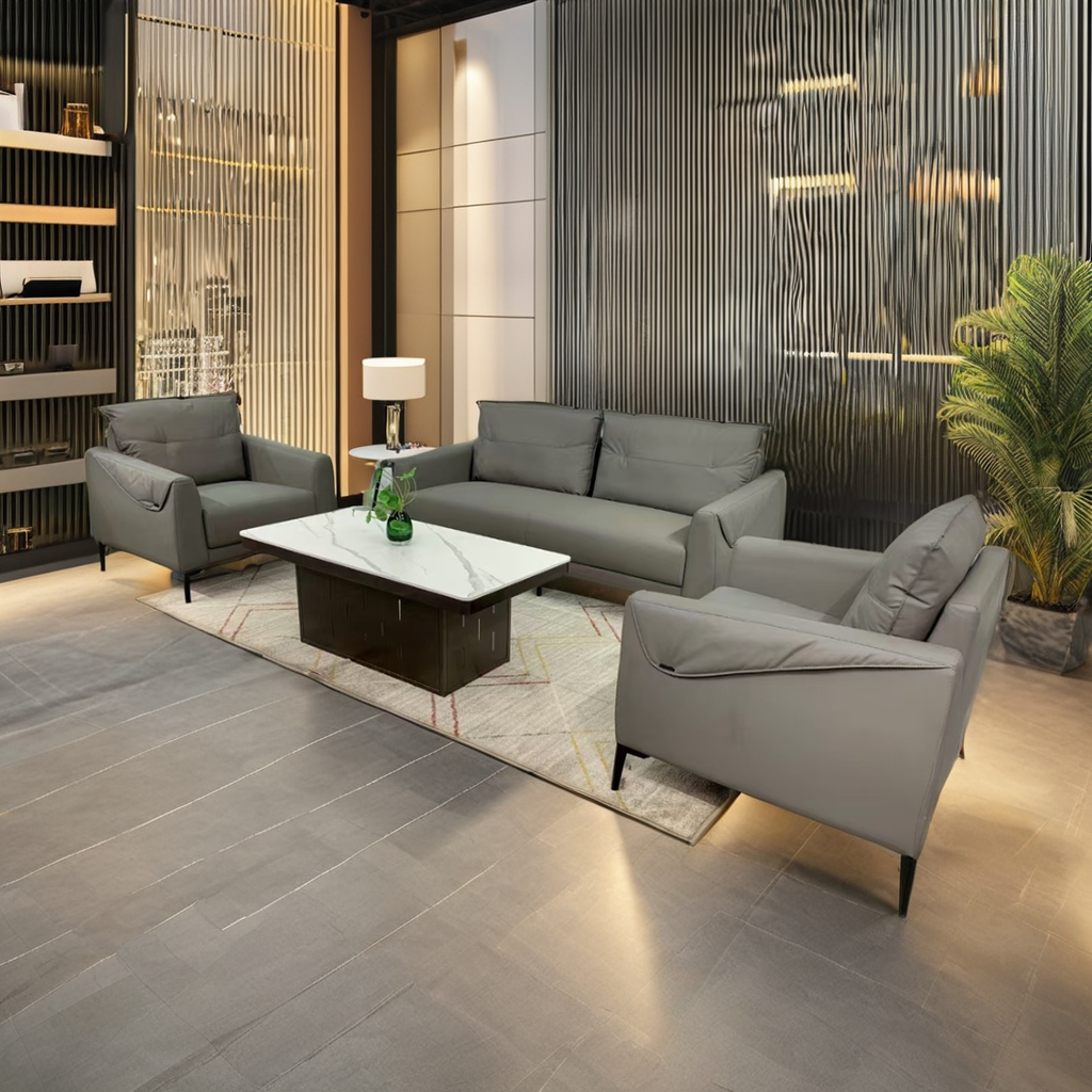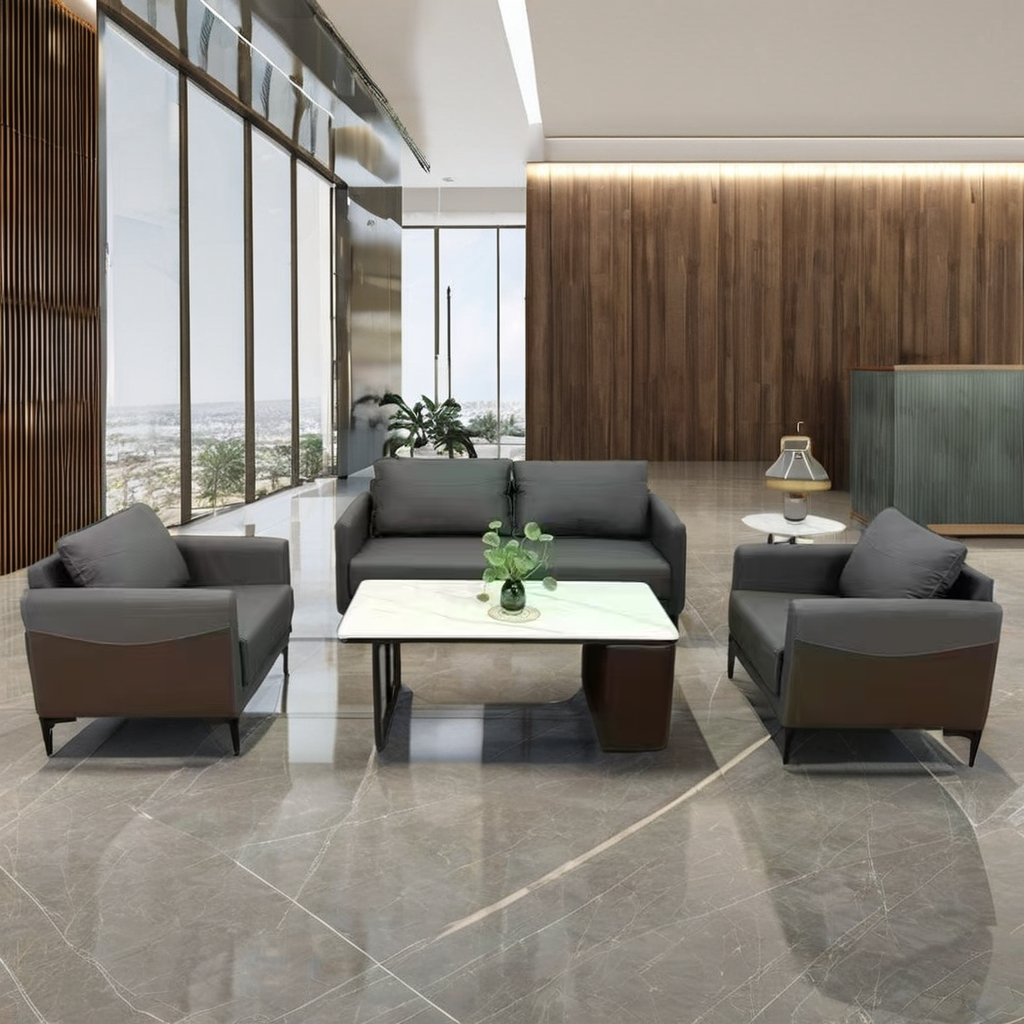 Built with a solid wood or metal frame and high-quality padding, the sofa set offers long-lasting durability. As a result, it withstands daily use in busy office environments without losing shape or comfort.