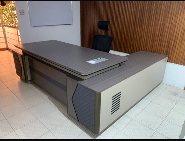 In addition, this desk enhances office aesthetics with its sleek, modern design and premium finishes. As a result, it not only serves as a practical workstation but also elevates the professional image of any executive office.