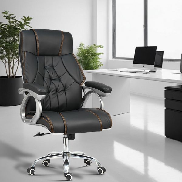 Command attention and experience luxurious comfort with the Director’s Office Executive Chair—designed to reflect authority, sophistication, and ergonomic excellence. This high-end executive chair features a tall backrest with integrated lumbar and neck support, plush cushioning, and premium upholstery in leather or high-quality PU. Built for decision-makers, it combines elegant aesthetics with practical features like tilt and recline mechanisms, height adjustment, and smooth mobility. Whether in a corner office, boardroom, or home executive setup, this chair enhances your workspace with comfort, confidence, and commanding style.