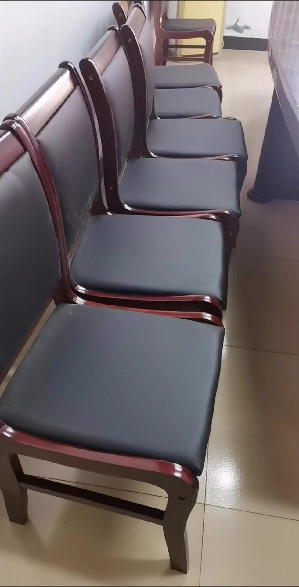 The chair features a well-padded seat and supportive backrest, offering excellent comfort during meetings and consultations. In addition, the ergonomic design supports proper posture, which helps visitors remain relaxed and attentive. Consequently, conversations flow smoothly and professionally. 🧘♂️✔️