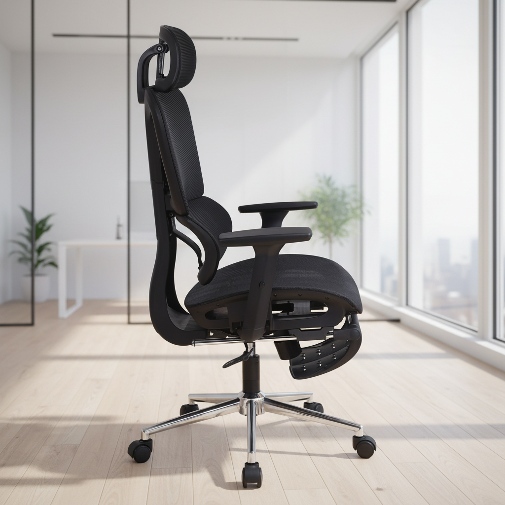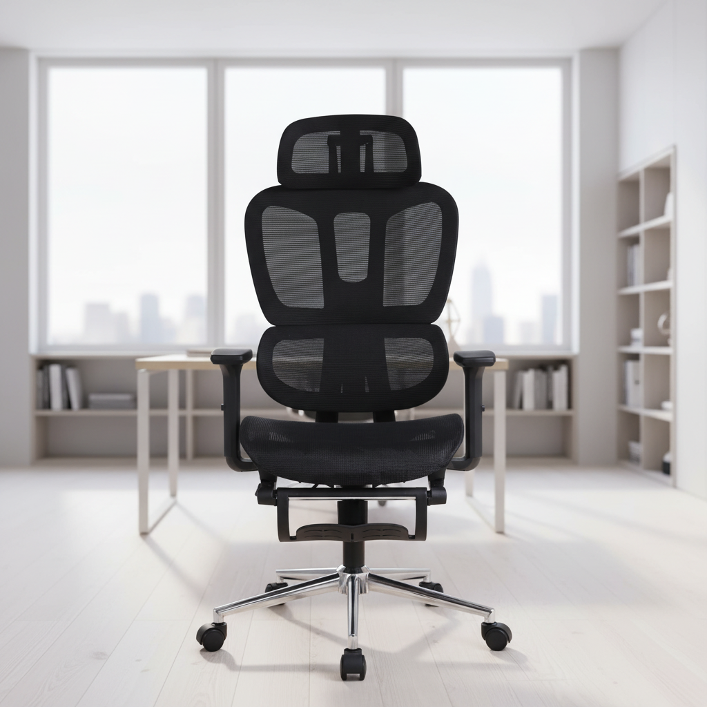 Experience superior comfort with the Ergonomic Mesh High-Back Chair, designed to support long working hours while enhancing productivity. 💼✨ Perfect for modern offices and home workspaces, this chair combines advanced ergonomic features with a sleek, professional look to keep you comfortable and focused throughout the day.