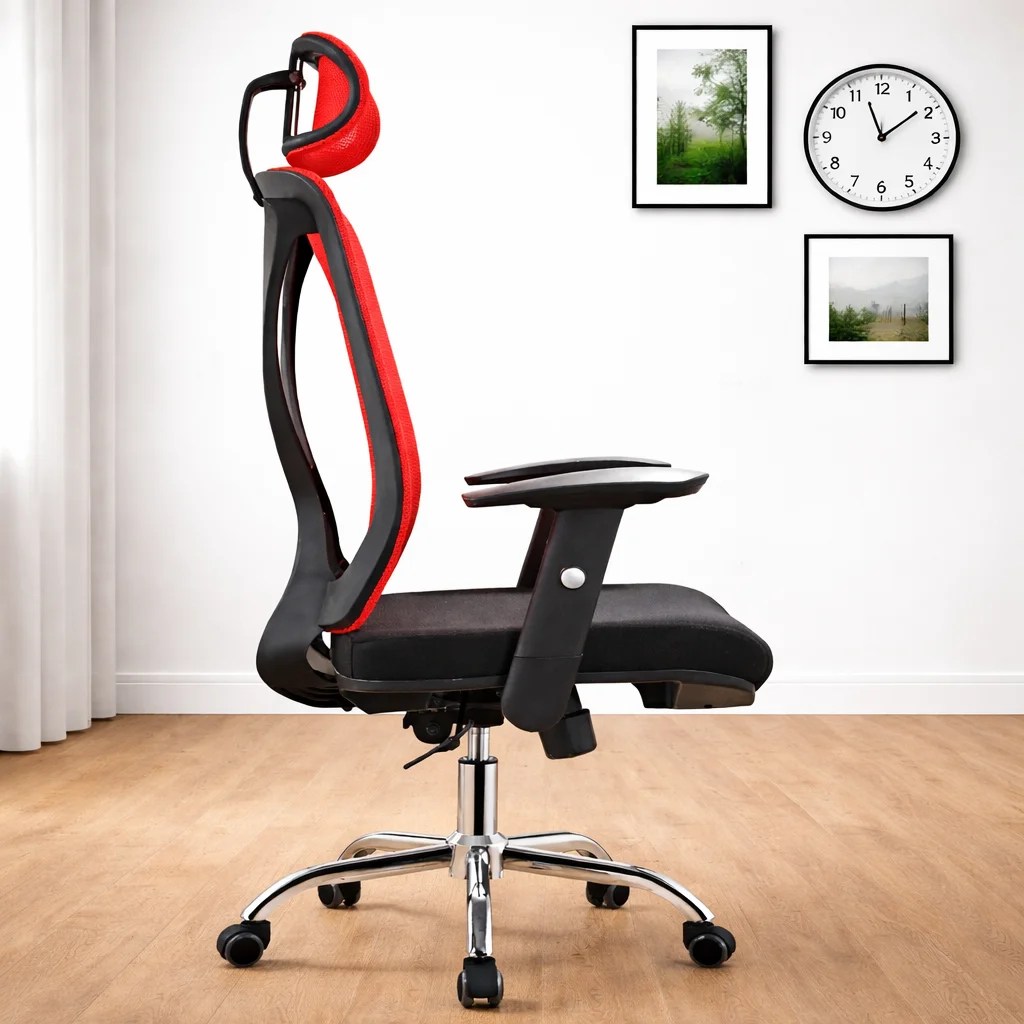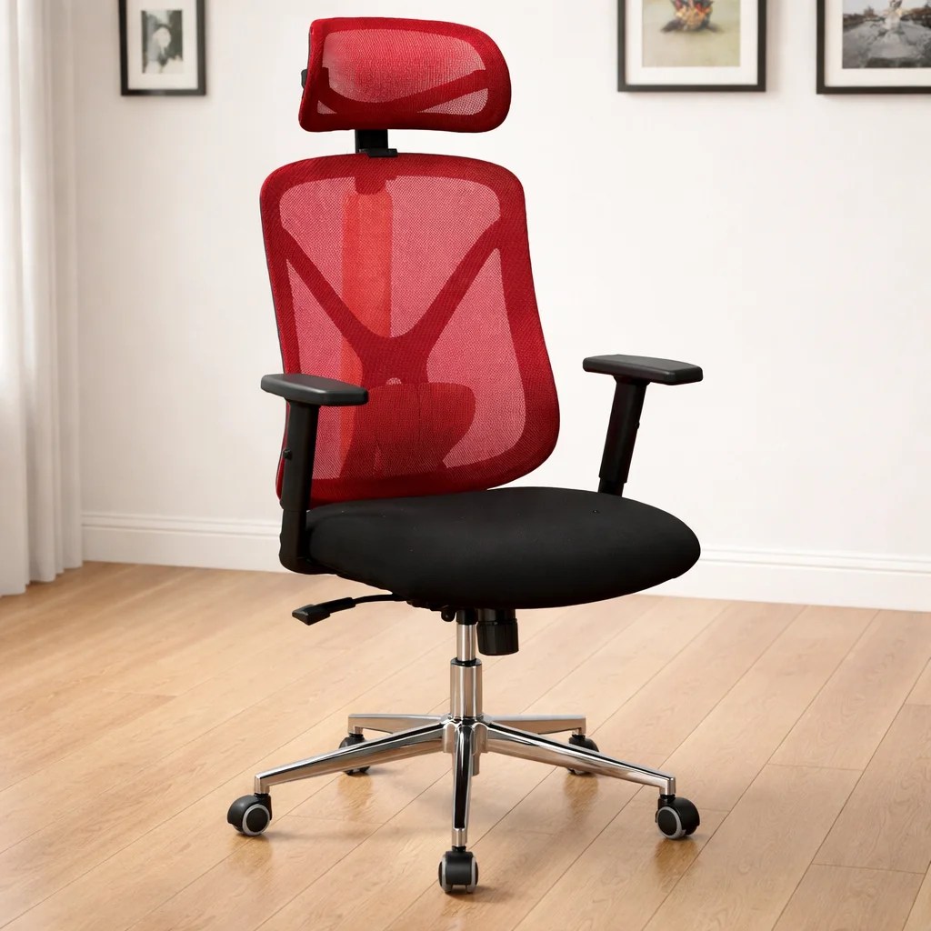 The Ergonomic Mesh High-Back Chair is designed to combine breathable comfort with strong ergonomic support for long hours at work or study. Its tall mesh backrest encourages airflow, keeping you cool and comfortable as you sit. Moreover, the high-back design supports your entire spine — from lower back to shoulders and neck — helping you stay productive throughout the day.