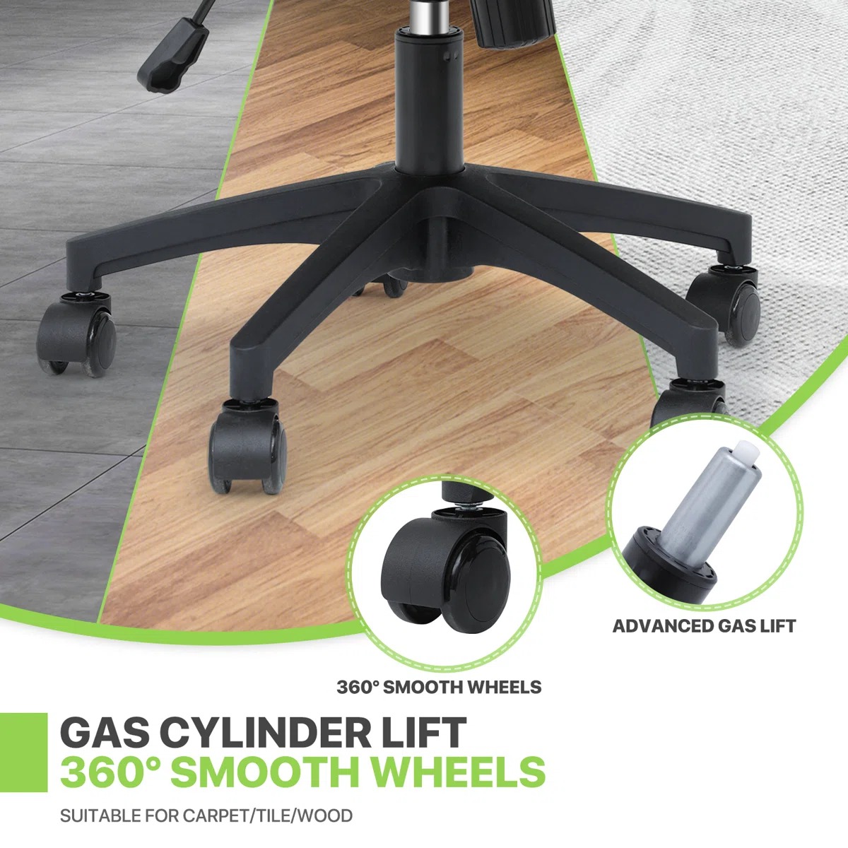 ✔ Pneumatic height adjustment