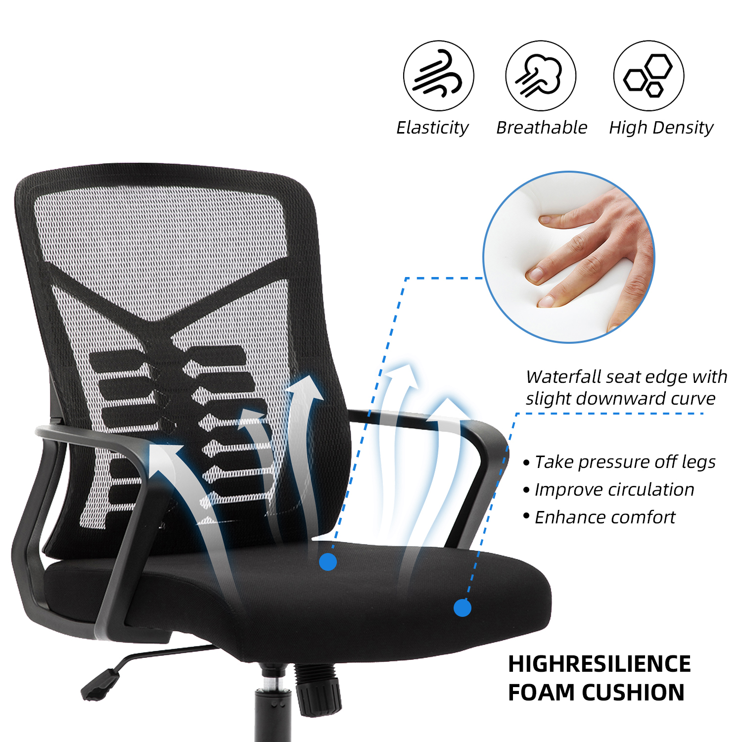 Stay cool throughout the day with a ventilated mesh backrest that promotes airflow and reduces heat buildup. This makes it ideal for warm environments and extended sitting sessions.