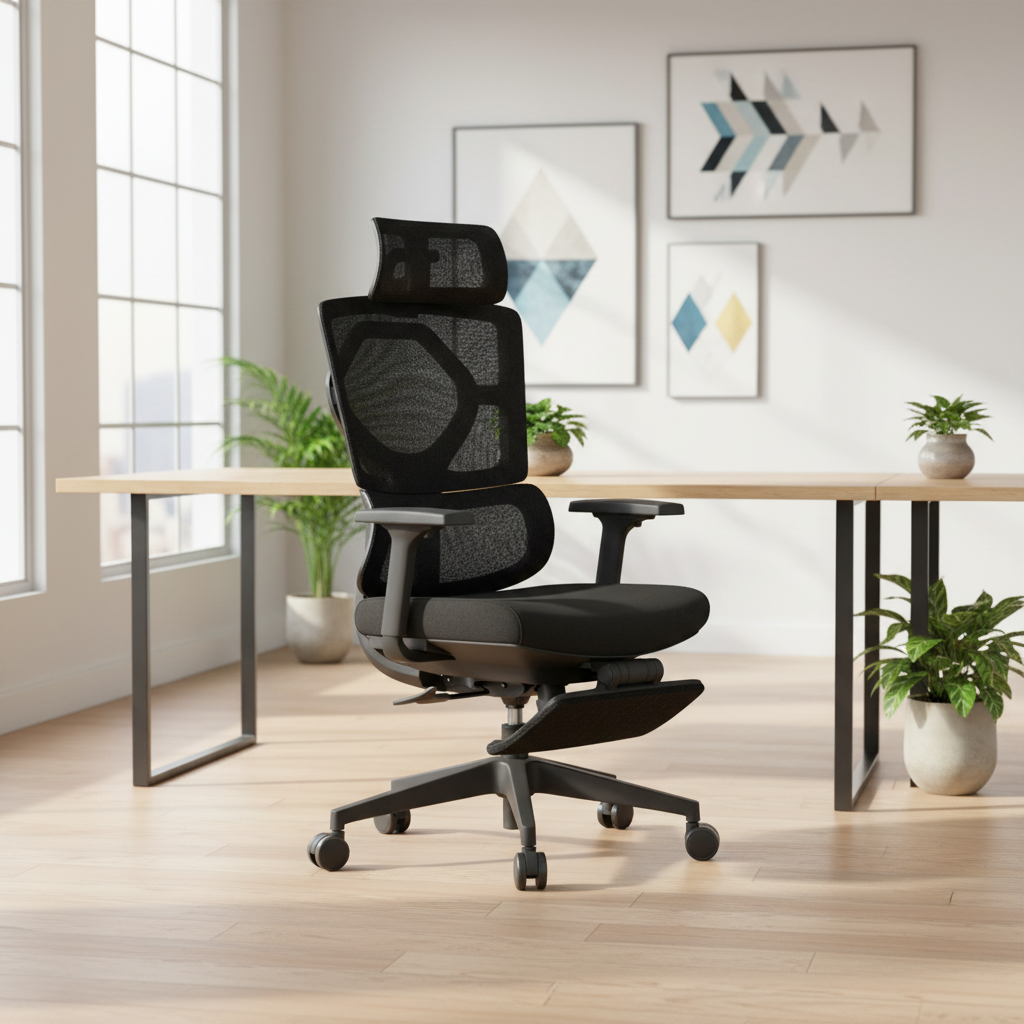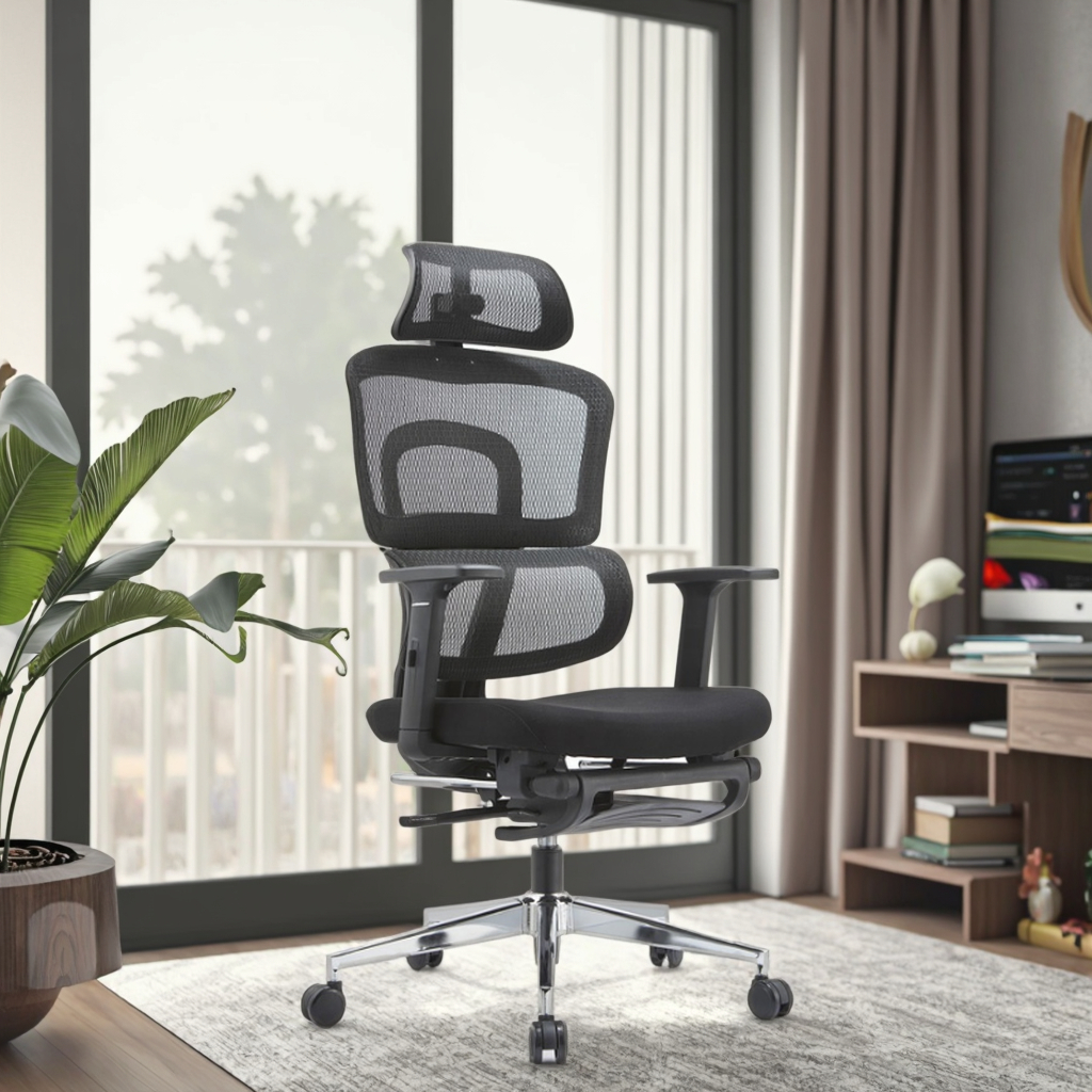 The Ergonomic Office Seat with Footrest combines comfort, support, and functionality for professionals who spend long hours at their desks. Its ergonomic design, adjustable features, and integrated footrest improve posture, reduce fatigue, and create a productive, comfortable workspace.
