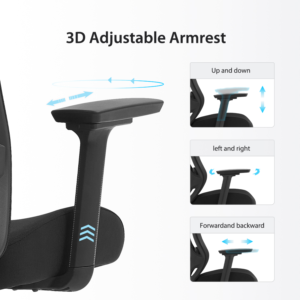The chair also includes adjustable height and tilt controls, allowing you to customize the seating position according to your desk height and comfort preference. As a result, you can easily achieve an ergonomic sitting posture that supports productivity.