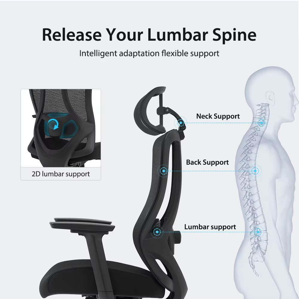 Supports the spine, neck, and shoulders for better posture and reduced fatigue.