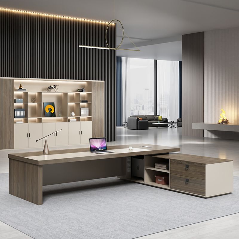 Choose configurations with drawers, cabinets, or open shelves to keep your office essentials neatly organized and easily accessible.