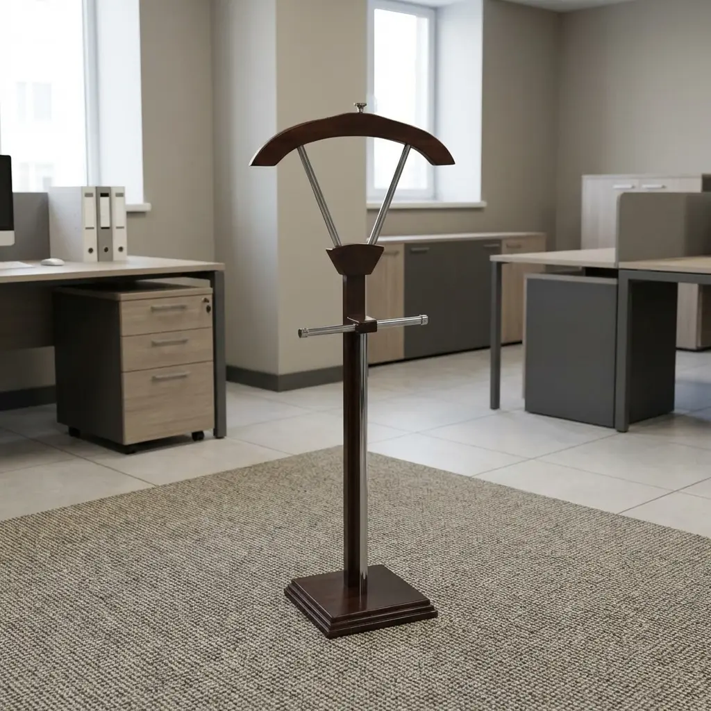 This coat hanger features a refined mahogany wood finish. In addition, it adds warmth and elegance to any office setting. Therefore, it complements both modern and traditional interiors.