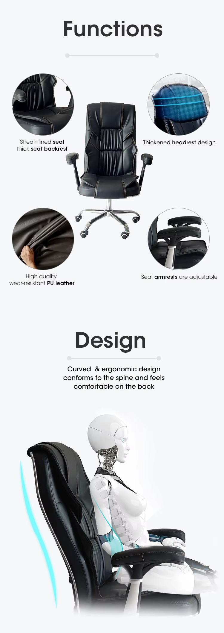 Modern Aesthetic: Clean lines and executive styling suitable for corporate or home office environments.