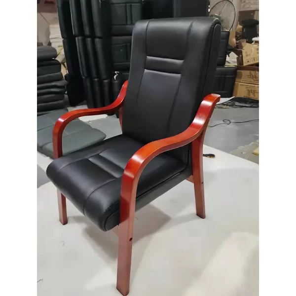 Featuring a sleek, upholstered seat and backrest, this chair exudes executive appeal. Available in PU leather, fabric, or mesh finishes, the design complements modern and traditional office décor alike. The polished metal or wooden frame adds both stability and a sophisticated look.