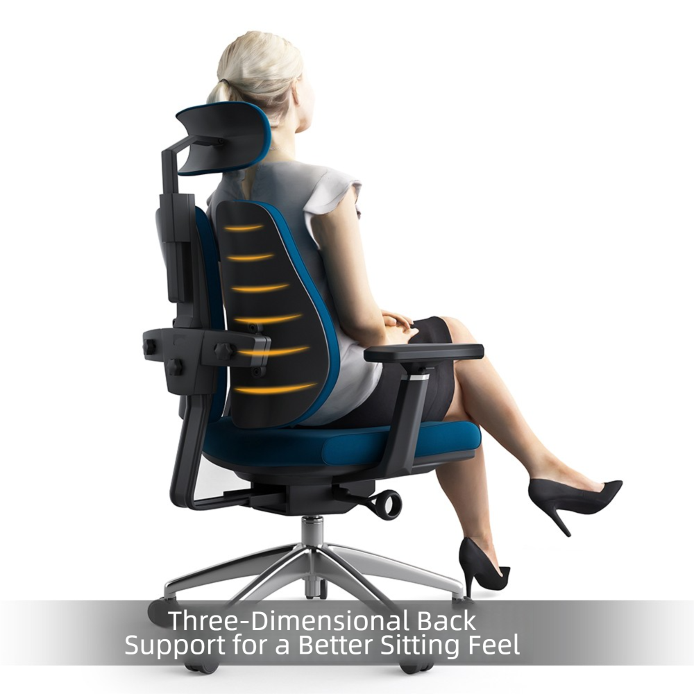 The high-back ergonomic design supports your entire spine, including your lower back, shoulders, and neck. This thoughtful structure helps reduce strain and fatigue, allowing you to maintain a healthy posture even during extended working hours.