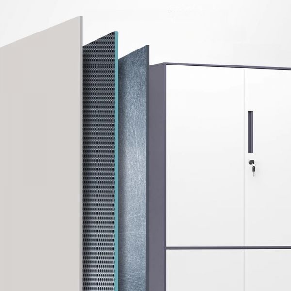 Featuring a double-compartment layout, the 4-door design provides ample internal storage with adjustable shelving. Each pair of doors opens to a dedicated vertical storage area, allowing users to separate and organize items efficiently.