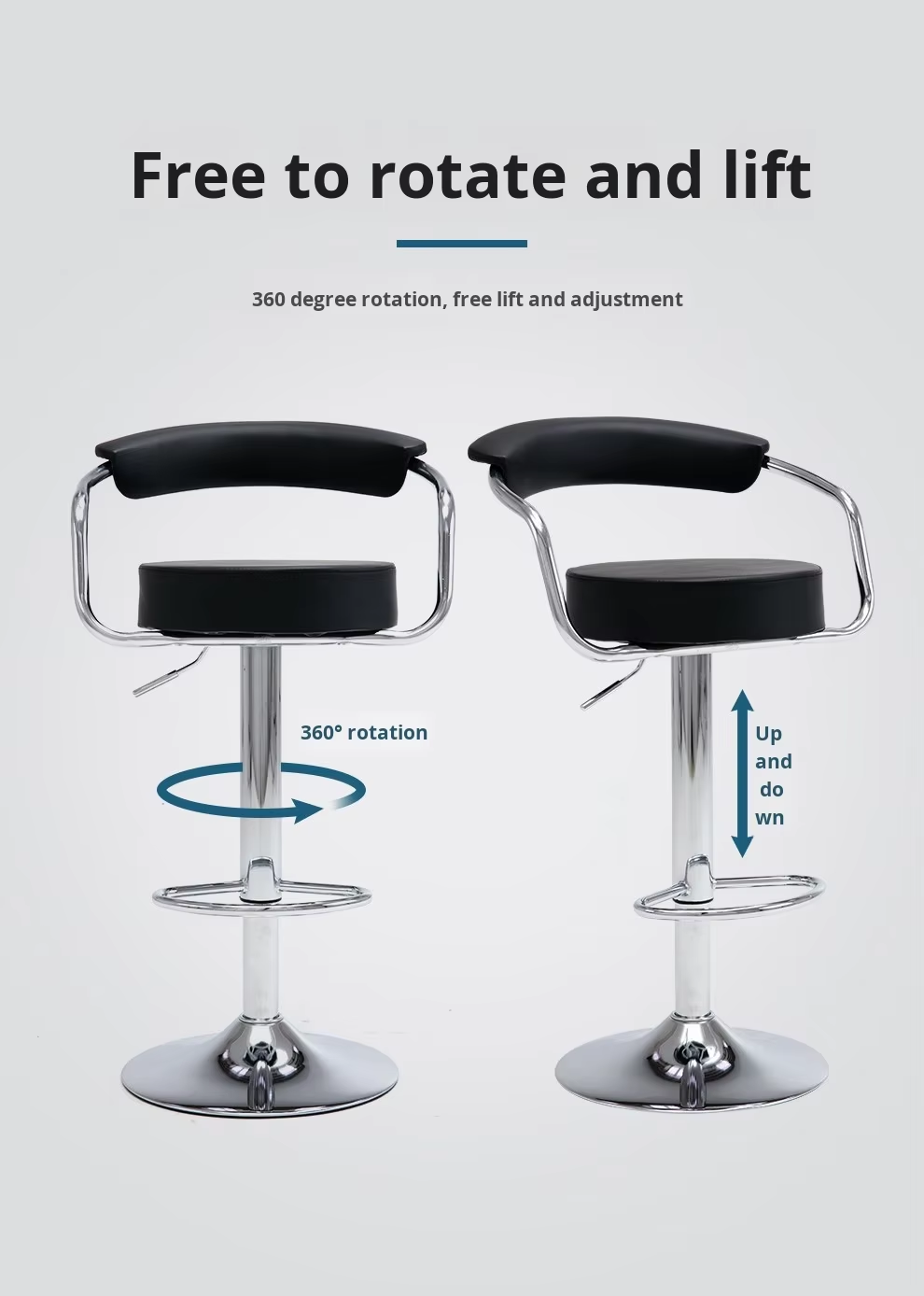 This modern swivel barstool is perfect for homes, restaurants, coffee shops, hotel lounges, and entertainment areas — offering both style and comfort at counter height.