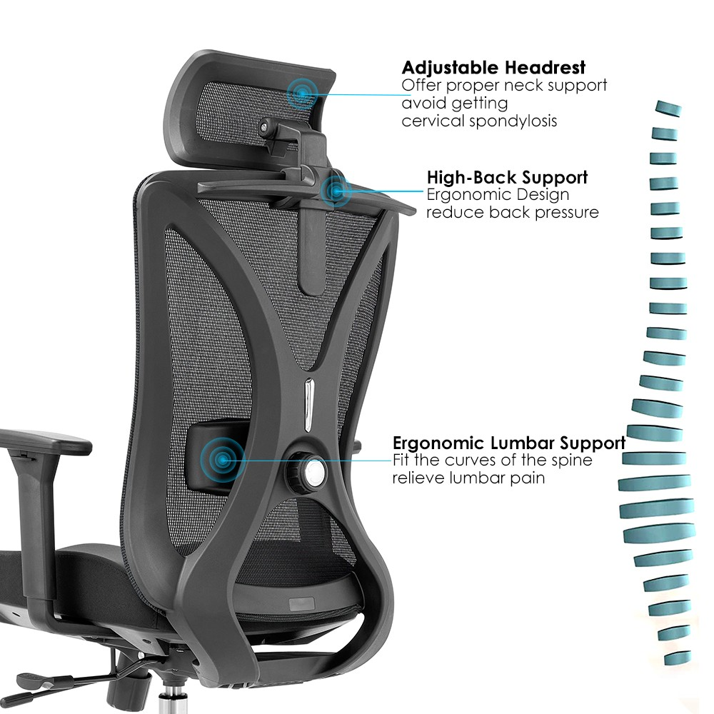 Ergonomic High-Back Design for full back, neck, and lumbar support