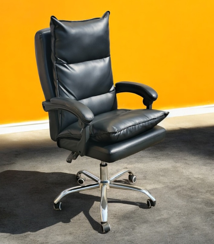 Upgrade your workspace with the Office Executive Leather Chair, designed to deliver premium comfort, ergonomic support, and a commanding professional presence. Upholstered in high-quality leather with plush cushioning, this executive office chair offers superior lumbar support and a high-back design to promote proper posture during long working hours. The sturdy metal base and smooth-rolling caster wheels ensure stability and effortless mobility, while the adjustable height and tilt mechanism allow personalized seating comfort. Perfect for corporate offices, executive cabins, boardrooms, and home offices, this leather executive chair combines luxury, durability, and functionality for maximum productivity and style.