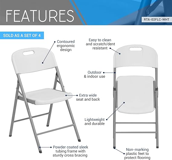 The chair features a smooth folding mechanism. Therefore, it can be folded flat when not in use. In addition, it helps maximize space in offices and storage rooms.
